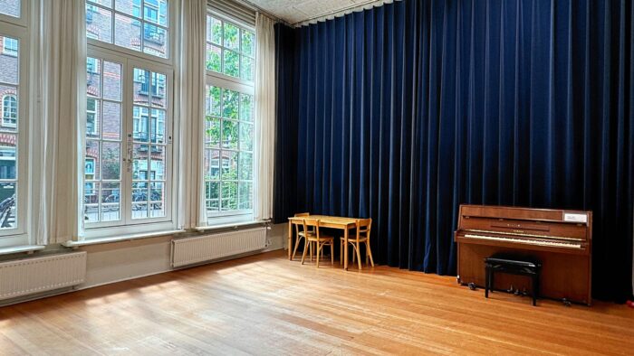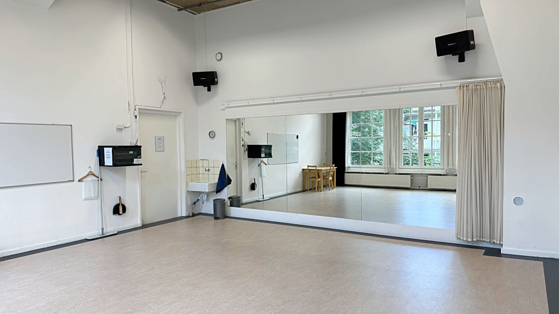Ondanks de naam is de Kleine Studio ideaal om te boeken voor de ruimtelijke indeling van de studio. Zo is de studio 7 meter bij 6,60 meter en heeft de ruimte een plafond op 4 meter hoogte.