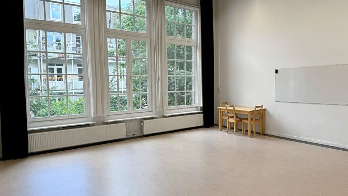 Dankzij de ruimtelijke opstelling van de Grote Studio, is deze ideaal te gebruiken voor workshops of activiteiten met grotere groepen, activiteiten die meer ruimte vereisen of wanneer er sprake is van publiek.