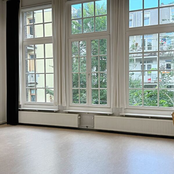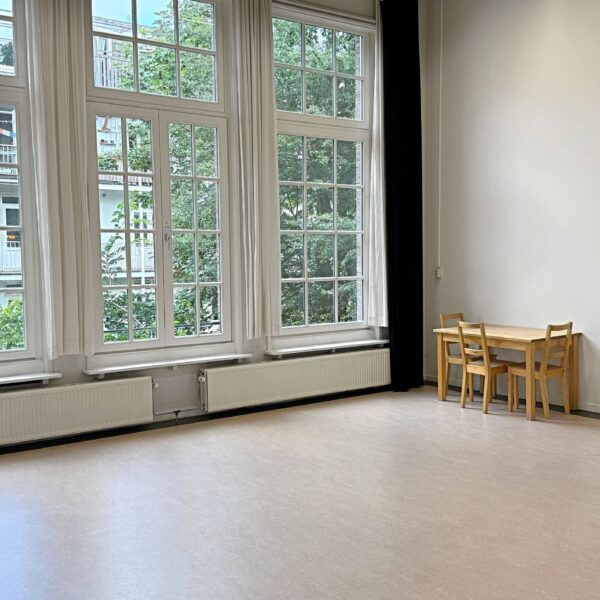 Dankzij de ligging aan de tuinkant van het gebouw, kijkt de studio door de grote ramen uit op veel groen. Naast het uitzicht op veel groen, speelt ook het ruimtelijke karakter van de studio een grote rol bij het boeken van deze studio. Dankzij de afmetingen van 7 meter bij 6,60 meter en een plafond op 4 meter hoogte is er in de Productie Studio veel mogelijk!