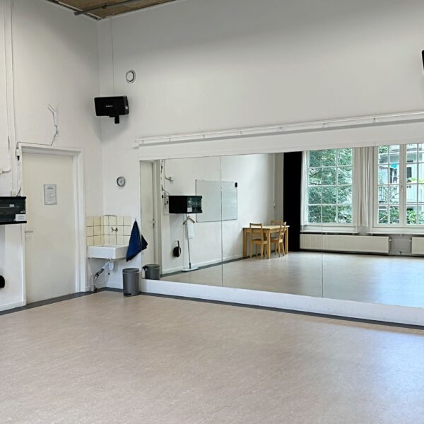 Daarnaast is de studio voorzien van een whiteboard, een spiegelwand, een tafel en diverse stoelen. Indien het aantal stoelen aanwezig in de studio niet voldoende is, kunnen er op de eerste verdieping stoelen van de gang worden gehaald. Mochten er extra tafels nodig zijn, kunnen deze bij de verhuur van de ruimte bijgeboekt worden.